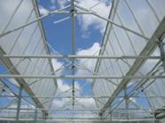当温室内的气候条件超出设定温度范围时,天窗和侧窗能随时启闭,使温室内的气流形成自然对流,以此对室内的气候进行调节。启闭方式为手动或电动,传动方式为卷膜机构或齿轮齿条机构。